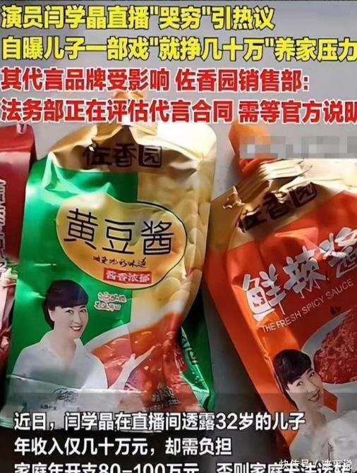 荤素搭配均衡,还能随时吃上老家的蘸酱。 还有媒体透漏,闫学晶的广告收入一分钟就达到了12万。 如此豪横,却在直播间向网友哭穷,很快引起了网友的反感。 可面对网友的议论,闫学晶还振振有词。