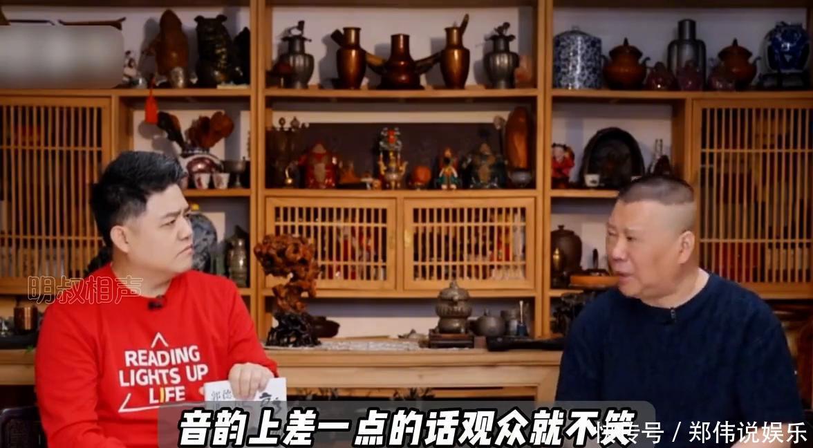 而于谦总能稳稳接住,他不需要任何准备,不管老郭的话多刁钻、多跳跃,他都能在电光火石间用最恰当的语气、最精准的表情把包袱垫到恰到好处。在台上突然间要说点什么话,我也不用提前跟他说,他凭感觉就知道我要干什么,然后他给你递的那个啊、哦就会特别准确。